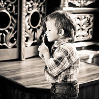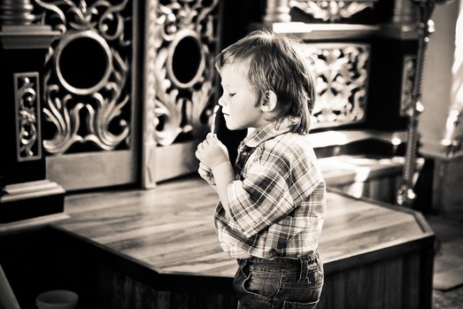 Церковь Смоленской иконы Божией Матери в селе Ям. Ярославская область, Переславский район. Дети -пристальный объект внимания, в том числе и в храме. Ванечка держал свечку и меня умилило это, и я решил сделать кадр, как он внезапно поднес свечку совсем рядом к себе.