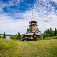 На снимке Часовня Трёх Святителей : Василия Великого, Иоанна Златоуста, Григория Богослова, была сделана на острове Кижи, куда ее перенесли из деревни Кавгора. Год постройки 2-я половина XVIII в. - конец XVIII в.