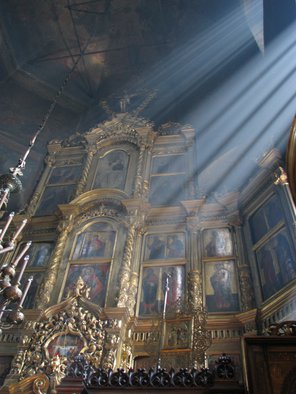 Интерьер храма. Свет от икон уходит в окна. Карагёзова Елизавета.
