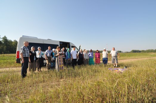 Тульские паломники (среди которых был и священник с матушкой) на пути домой (2013г.) Молебен и трапеза в чистом поле в связи с совпавшим днем рождения одной из паломниц.