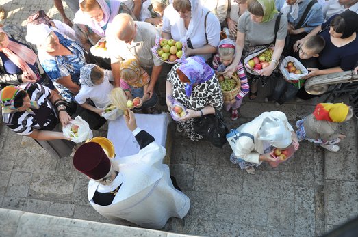 Праздник Преображения Господня в Кремле г. Ярославля. Освящение даров земных на ступенях Храма Преображения Господня (19.08.2013г.)
