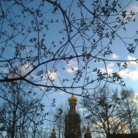 Накануне Вербного Воскресения.После всенощной службы. Верба, небо и храм.Смартфон 5 мп.