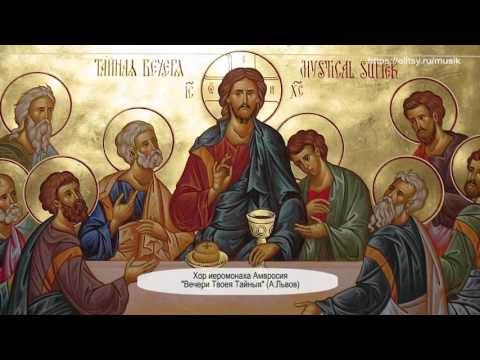 Звучит песнопение Алексея Львова "Вечери Твоея тайныя" в исполнении хора иеромонаха Амвросия...