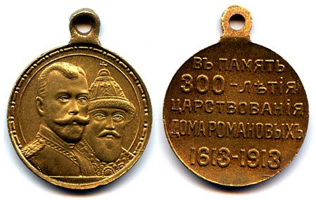 Памятью о торжествах осталась медаль, на которой изображены профили Михаила Федоровича Романова (основателя династии) и Императора Николая II. На Санкт-петербургском монетном дворе в 1913-1914 гг. было отчеканено свыше 1, 5 млн. медалей: золотые, серебряные, темно-бронзовые и светло-бронзовые. Кроме того, чеканка медали была отдана на откуп частным лицам, и потому вариантов ее существует множество. Медаль носили на ленте черно-желто-белых цветов.