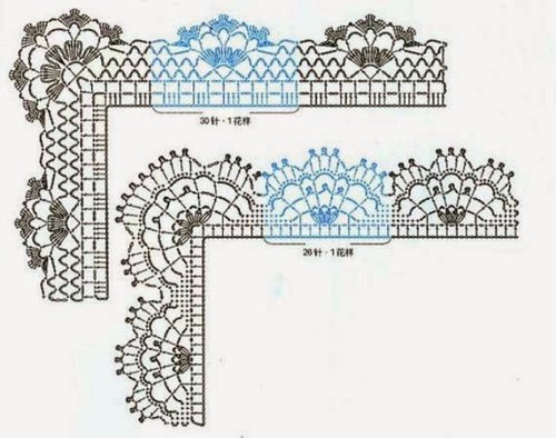 Выбираем понравившуюся нам схему обвязки края и далее обвязываем квадраты согласно схеме.