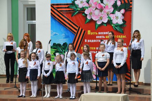 Театральная студия «Импульс», рук. И. Елецкая, показали на сцене годы войны, которые сопровождались стихами и песнями, в которых участвовали солисты: Д. Андронов, Т. Мазепа, Д. Мамлеева, В. Уточкина, коллектив народной песни «Сударушка», рук. И. Молодежникова, студия песни «Планета талантов», рук. О. Ольховская, танцевальный коллектив «Магнолия», рук. М. Пронина. Показательные выступления секции греко-римской борьбы, рук. С. Савихин, были представлены в виде импровизированного боя. С праздником Победы ветеранов поздравили песнями солисты: М. Попова, О. Ольховская и учащиеся Гимназии №3.
