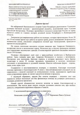 С Божьей помощью предоставилась возможность поучаствовать в благотворительной помощи Успенскому подворью Введенского ставропигиального мужского монастыря Оптина пустынь в Санкт-Петербурге.