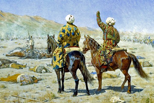 Картина: Василий Верещагин. «Парламентёры. "Сдавайся!" — "Убирайся к чёрту!"»
