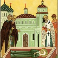 Гроб с честными останками старицы Матроны был доставлен в Данилов монастырь и помещен в надвратном храме во имя преподобного Симеона Столпника.