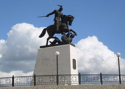 ( Памятник Великому князю Киевскому Святославу Игоревичу. Установлен в живописном уголке Белгородской области рядом с Холкинским монастырем )