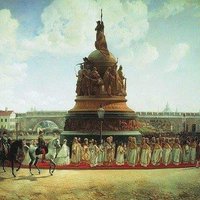 ( Открытіе памятника Тысячелѣтіе Россіи въ Новгородѣ, 1862 годъ. Художникъ Виллевальде Б.П. )