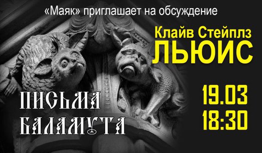 Православный культурно-просветительский клуб "Маяк" приглашает на обсуждение "Писем Баламута" К.С. Льюиса 19 марта в 18:30 в аудитории воскресной школы храма Сергия Радонежского в Таганроге.