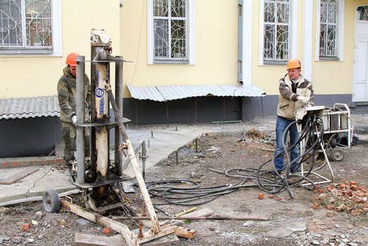 Укрепление фундамента посредством комплекса буроинъекционных работ по устройству противофильтрационной цементационной завесы по периметру цоколя проведено в рамках подготовки к реконструкции храма.