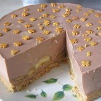 Бананы порезать вдоль и поперек (каждый на 4 части разделяется) и уложить на застывший корж.