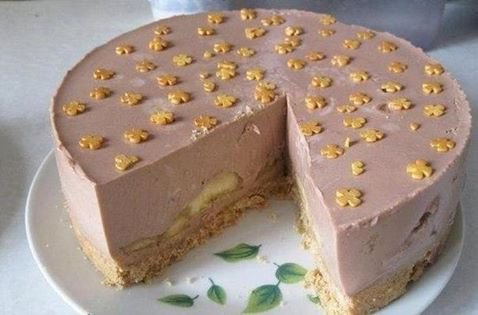В разъемную форму выстелить пергамент для выпечки. Высыпать туда печенье, утрамбовать и поставить минут на 15 в холодильник.