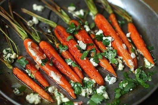 5. Перекладываем на тарелку и на теплую морковь выкладываем фету и петрушку. Перемешиваем. Кушаем, читая книжку, запивая растительным бульоном или молоком.