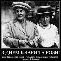 Международный женский день был установлен на 2-й конференции социалисток в 1910 году в Копенгагене. Идея принадлежала Кларе Цеткен. «Я тогда имела определенное намерение, - писала она, -создать день революционной мобилизации широких женских масс…» Мобилизация закончилась удачно: миллионы трупов русских женщин по всей нашей, затянутой колючей проволокой, стране, миллионы сломанных семей и искалеченных людских душ.