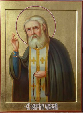 Видящи мати твоя, преподобне отче Серафиме, теплую любовь твою ко иноческому житию, позна святую волю Господню о тебе, и Богу яко дар совершен приносящи, благослови тя на тесный путь иноческий святым крестом своим, его же до конца жития твоего на персех носил еси, знаменуя велию любовь твою к распеншемуся за ны Христу Богу нашему, Ему же вси со умилением зовем: Аллилуиа.