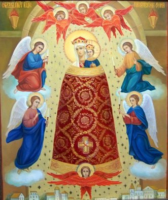 Достойно есть яко воистинну блажити Тя Богородицу, Присноблаженную и Пренепорочную и Матерь Бога нашего. Честнейшую Херувим и славнейшую без сравнения Серафим, без истления Бога Слова рождшую, сущую Богородицу Тя величаем.