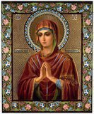 О, Пресла́вная Ма́ти Христа́ Бо́га на́шего, благи́х Пода́теля, ми́лостию Свое́ю всю вселе́нную сохрани́, да́руй нам, рабо́м Твои́м, прему́дрость и ра́зум, све́том Сы́на Твоего́ ду́ши на́ша просвети́, еди́на Всепе́тая, от Херуви́м и Серафи́м сла́вимая.