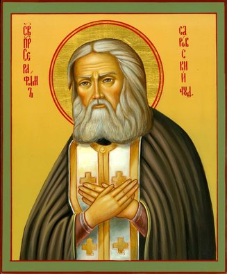 О пречудный отче Серафиме, великий Саровский чудотворче, всем прибегающим к тебе скоропослушный помощниче! Во дни земнаго жития твоего никтоже от тебе тощ и неутешен отыде, но всем в сладость бысть видение лика твоего и благоуветливый глас словес твоих. К сим же и дар исцелений, дар прозрения, дар немощных душ врачевания обилен в тебе явися. Егда же призва тя Бог от земных трудов к небесному упокоению, николиже любовь твоя преста от нас, и невозможно есть исчислити чудеса твоя, умножившаяся, яко звезды небесныя: се бо по всем концем земли нашея людем Божиим являешися и даруеши им исцеления. Темже и мы вопием ти: о претихий и кроткий угодниче Божий, дерзновенный к Нему молитвенниче, николиже призывающия тя отреваяй, вознеси о нас благомощную твою молитву ко Господу Сил, да дарует нам вся благопотребная в жизни сей и вся к душевному спасению полезная, да оградит нас от падений греховных и истинному покаянию научит нас, во еже безпреткновенно внити нам в вечное Небесное Царство, идеже ты ныне в незаходимей сияеши славе, и тамо воспевати со всеми святыми Живоначальную Троицу во веки веков. Аминь.