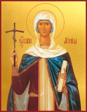 Святая Нина родилась около 280 г. в г. Коластры (в Каппадокии) в семье римского военачальника. В 12-летнем возрасте Нина вместе с родителями пришла в Иерусалим. Воспитание Нины было поручено благочестивой старице Нианфоре, у которой девочка училась основам веры и чтению Священного Писания. Святую Нину очень интересовала судьба нетленного Хитона Господня, и Нианфора поведала ей, что святыня, по преданию, сокрыта в Иверии (Грузии). Нина усердно молилась Богоматери и просила Ее помочь обрести Хитон Господень. Однажды во сне Богородица явилась Нине и благословила ее крестом, сплетенным из виноградной лозы, идти в Иверию, обещав Свое покровительство. Когда Нина проснулась, то увидела этот крест в своих руках. Святая отправилась в языческую Иверию. Ее проповедь о Христе, совершаемые по ее молитвам знамения и чудеса, а также добродетельная жизнь содействовали обращению жителей Иверии к христианству. Считается, что к 324 г. христианство окончательно утвердилось в Иверии. После многолетних апостольских подвигов в 335 или 347 г. святая Нина отошла ко Господу.