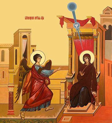 Благовещение Пресвятой Девы Марии празднуется Святой Православной Церковью 25 марта (7 апреля по новому стилю). В город Назарет с благой вестью к Деве Марии был послан от Бога Архангел Гавриил. Войдя к Ней, он сказал: радуйся, Благодатная! Господь с Тобою; благословенна Ты между женами. Приступая к сущности благовестия, Архангел выразился словами, напоминающими пророчество Исаии, предсказавшего рождение Спасителя от Девы: зачнешь во чреве, и родишь Сына, и наречешь Ему имя: Иисус. Он будет велик и наречется Сыном Всевышнего, и будет царствовать над домом Иакова вовеки, и Царству Его не будет конца (ср.: Лк. 1, 31–33). Мария же сказала Архангелу: как будет это, когда Я мужа не знаю? Архангел Гавриил ответил Ей: Дух Святой найдет на Тебя, и сила Всевышнего осенит Тебя; посему и рождаемое Святое наречется Сыном Божиим (ср.: Лк. 1, 34–35). Пресвятая Дева ответила: да будет Мне по слову твоему (ср.: Лк. 1, 38). Это событие и составляет сюжет иконы «Благовещение Пресвятой Богородицы» (благовещение – это благая, радостная весть).