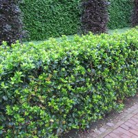 туидешево.рф Предлагаем сформированную живую изгородь из кизильника, высота 70—80 см. Кизильник блестящий (лат. Cotoneáster lucídus) – вид кустарников рода Кизильник (Cotoneaster) из семейства розовых (Rosaceae). Пряморастущий кустарник до 3 м высотой, с густыми молодыми побегами текущего года. Крона образована прямыми побегами, растущими во все стороны. Ежегодный прирост 30–50 см. Листья темно-зеленые, блестящие. Осенью окраска листьев становится красно-коричневой. Кустарник неприхотлив, устойчив к морозам и засухе, декоративен, хорошо переносит формирующую обрезку. Чаще всего его используют для посадки живых изгородей, бордюров т.п., а также для создания декоративных геометрических фигур.
