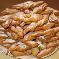 2. Затем посыпать стол мукой, раскатывать прямоугольный пласт не тоньше чем 1 сантиметр (если хотите тонкий хворост то раскатать тоньше).