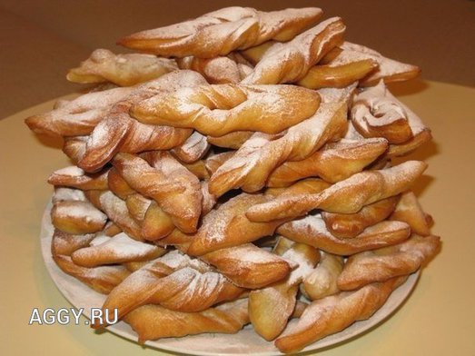 3. Нарезать пласты на небольшие прямоугольники, в середине прорезать отверстие и через отверстие вывернуть один конец хвороста.