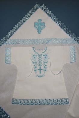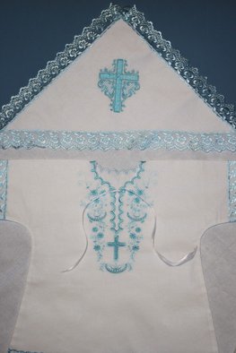 Набор из 2-х предметов рубашечка и пеленка уголок размеры 100*80, размеры 0-6 (длина рубашки 42 см. и 4-10 месяцев(длина рубашки-45 см.) Крестильный набор "Ангел мой"
