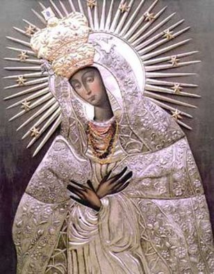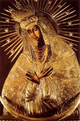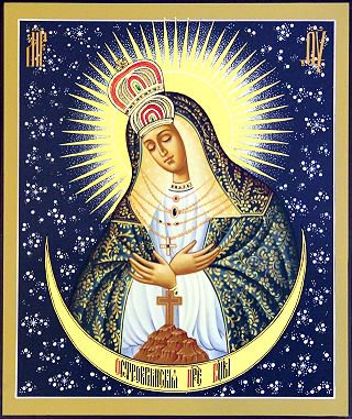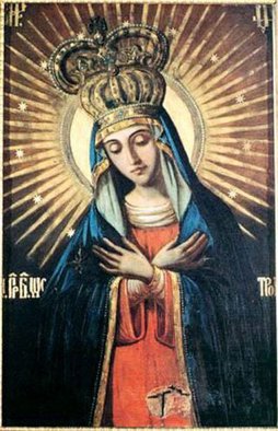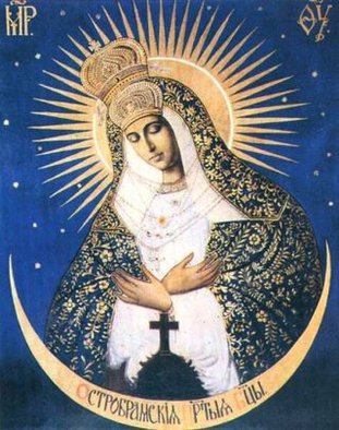 Остробрамская икона Божией Матери - чудотворная икона, широко почитаемая православными и католиками в Белоруссии, Литве, на Украине и в Польше; находится в часовне, называемой Острая Брама (Острые Ворота) в Вильнюсе. На иконе (размером 2 м х 1, 63 м) Богоматерь изображена по пояс, голова склонена, глаза опущены, руки скрещены на груди; на голове двухъярусная корона, нимб окружен острыми лучами сияния со звездами; золоченая риза полностью закрывает фигуру, оставляя открытыми только лик и руки.