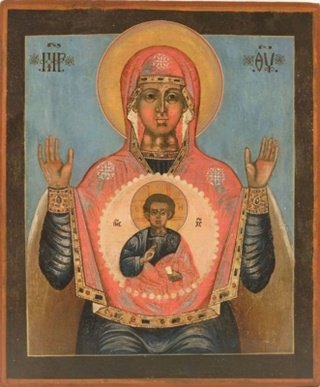 К иконам типа «Оранта» относятся иконы «Живоносный Источник», «Знамение», «Неупиваемая Чаша».