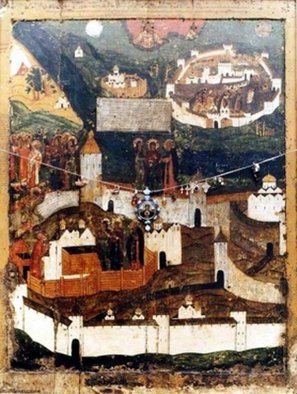 Эта икона написана в память о чудесном заступлении Пресвятой Богородицы за город Псков во время его осады войсками польского короля Стефана Батория в августе 1581 года. Услышав о приближающемся неприятеле, псковский владыка обратился в Псково-Печерский монастырь с просьбой принести в город чудотворные иконы Божией Матери «Успение» и «Умиление», что и было исполнено.