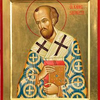 От Небес приял еси Божественную благодать/ и твоими устнами вся учиши/ покланятися в Троице Единому Богу,/ Иоанне Златоусте, всеблаженне преподобне,/ достойно хвалим тя:/ еси бо наставник,// яко Божественная являя.