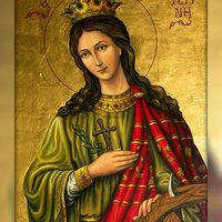 Лик честный Божественне, мучениколюбцы,/ воздвигните ныне,/ почитающе всемудрую Екатерину,/ сия бо в тризнищи Христа проповеда и змия попра,// риторов разумы укротивши.