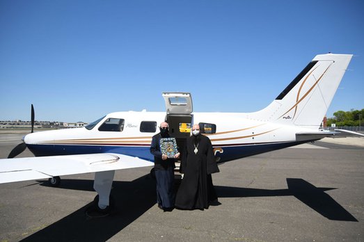 Епископ Манхэттенский Николай совершил молебен с акафистом Божией Матери и облетел с чудотворной иконой вокруг Манхэттена, над районами и пригородами Большого Нью-Йорка и графствами Лонг-Айленда.