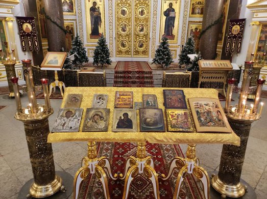 В итоге, 10 святых образов, в т.ч. Успения Пресвятой Богородицы, Божией Матери «Троеручица» и святителя Николая Чудотворца, переданы приходу Софийского (Вознесенского) собора города Пушкин Санкт-Петербурга.