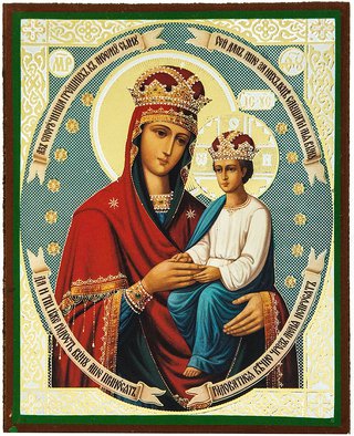 В монастыре в честь чудотворного образа был построен большой трехпрестольный храм. На иконе «Споручница грешных» Богоматерь изображена с Младенцем на левой руке, Который обеими руками Своими держит Ее правую руку. Главы Богоматери и Младенца увенчаны коронами.