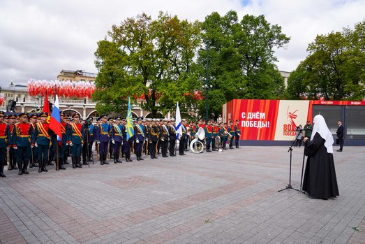 Предстоятель, иерархи и духовенство Русской Православной Церкви возгласили «Вечную память» «вождем и воинам на поле брани Победы ради за веру и Отечество жизнь свою положившим» и пропели тропарь праздника Пасхи «Христос Воскресе!».
