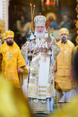 На сугубой ектении были вознесены особые прошения, Предстоятель Русской Церкви прочитал молитву о Святой Руси.