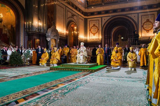 В ПРАЗДНИК РОЖДЕСТВА ПАТРИАРХ КИРИЛЛ СОВЕРШИЛ БОЖЕСТВЕННУЮ ЛИТУРГИЮ В ХРАМЕ ХРИСТА СПАСИТЕЛЯ