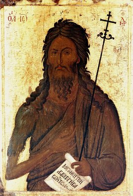 Святой Иоанн вырос в дикой пустыне, готовя себя к великому служению строгой жизнью – постом и молитвой. Он носил грубую одежду, прихваченную кожаным поясом, и питался диким медом и акридами (род саранчи). Он оставался пустынножителем до тех пор, пока Господь не призвал его в тридцатилетнем возрасте к проповеди еврейскому народу.