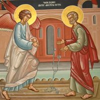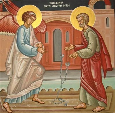 Около 42 года апостол Петр по повелению Ирода Агриппы был заключен в темницу за проповедь о Христе Спасителе. В темнице он был связан двумя железными цепями. Ночью, накануне суда над ним, Ангел Господень снял с апостола эти цепи и чудесно вывел его из темницы (Деян.12, 1-11).