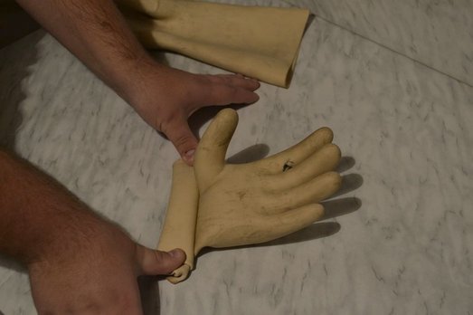 Для более комфортной работы (чтобы руки не потели и не были влажными) можно одевать тонкие Х/Б перчатки, а затем диэлектрические!!! Очень удобно!