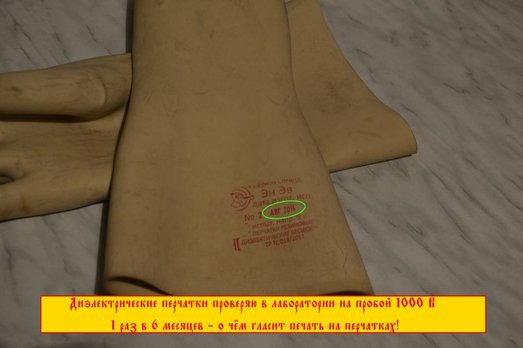 На предприятиях перчатки проверяют раз в пол года, о чём ставится печать на манжетах перчаток. На новых перчатках тоже стоит печать о проверке на пробой 1000 В.