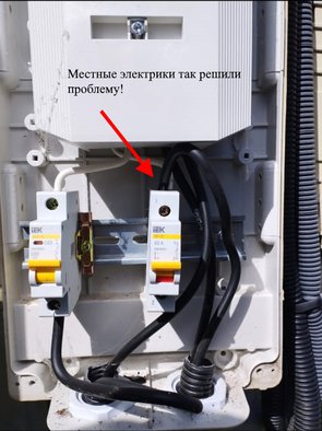 Рубильник стоял в боксе со счётчиком на столбе, за территорией участка. Счётчики и прочее оборудование были установлены по программе.