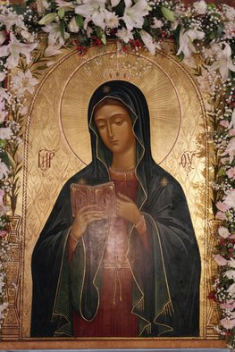 ИСТОРИЯ Явление Калужской иконы Божией Матери произошло в 1748 году в селе Тинькове, недалеко от Калуги, в доме помещика Василия Кондратьевича Хитрово. Две служанки перебирали на чердаке его дома старые вещи. Одна из них, Евдокия, отличавшаяся несдержанным нравом, позволяла себе резкие и даже непристойные речи, не обращая внимания на увещевания своей скромной подруги. Среди прочих вещей они случайно обнаружили большой сверток сурового холста. Развернув его, благочестивая девушка увидела изображение Женщины в темном одеянии с книгой в руках. Приняв изображение за портрет монахини и желая образумить Евдокию, она пригрозила ей гневом игумении. Дерзкая Евдокия ответила на слова подруги бранью и, поддавшись раздражению, плюнула на лик. Тотчас же с ней случился припадок, и она упала без чувств.Испуганная подруга рассказала о случившемся в доме. На следующую ночь родителям Евдокии явилась Царица Небесная и открыла им, что это над Ней кощунственно смеялась их дочь и повелела им совершить молебен перед поруганной иконой, а больную окропить освященной на молебне водой. После молебна Евдокия выздоровела.