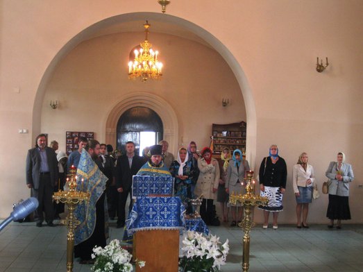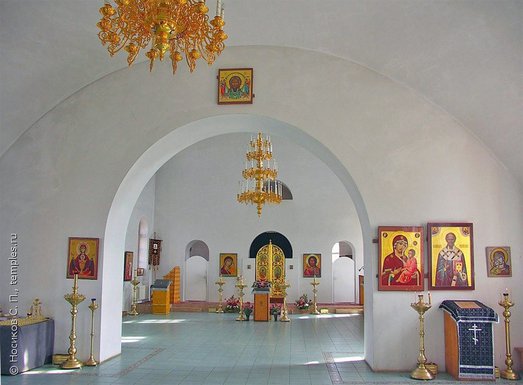 В церкви действуют два предела – верхний - во имя святого Великомученика и Победоносца Георгия и нижний – во имя с царственного страстотерпца цесаревича Алексия и царственных мучеников.