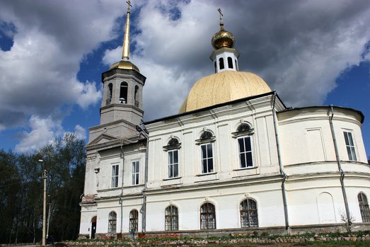 Собор Троицы Живоначальной – первый каменный храм города Онеги. Строительство собора началось в 1796 году. Собор имел два этажа и пристроенную над папертью колокольню. В 1780 году по указу Екатерины II селение Усть-Онежское переименовано в город Онега, а через четыре года был утверждён первый генеральный план застройки города, в центре которого, на возвышенности, должен быть воздвигнут белокаменный Свято-Троицкий собор. В мае 1814 года освятили холодную Свято-Троицкую церковь на втором этаже собора. А в июле 1837-го года освятили придел Николая Чудотворца в трапезной нижнего храма. В конце ХIХ века капитально отремонтировали нижний храм с поновлением иконостаса покраской стен и отделкой колонн под мрамор. В таком виде, являясь духовным центром и архитектурной доминантой Онеги, Свято-Троицкий собор дожил до конца 1920-х годов.